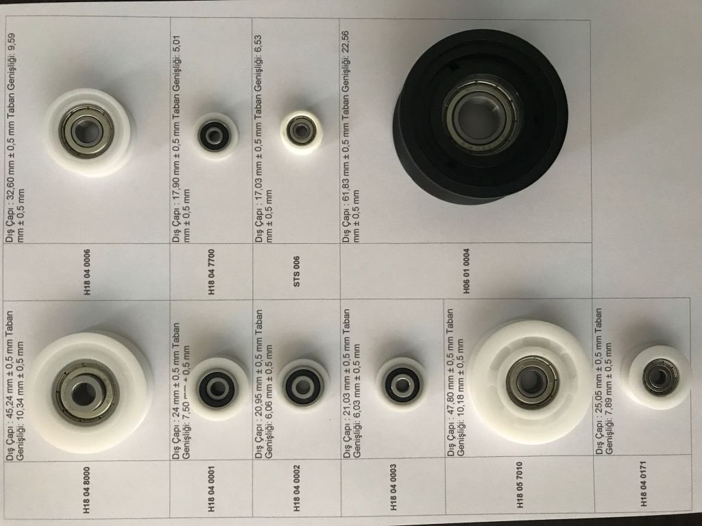 TR160000200005 | Sürgülü kapı ve dolap sistemlerinde kullanılan dışı plastik maddeden yapılmış, göbeği rulmandan mamül, oluklu rulmanlı ve pimli tekerlek. | Tarifenin Yorumu ile İlgili Genel Kurallar (1) ve (6) 84. Fasıl Notları ile XVI Bölüm, 8483 pozisyon notları, 8302 tarife pozisyonu AB açıklama notları. | 8483.50.80.00.12 | 07.01.2020 | 06.01.2026 | Bu BTB veriliş tarihinden itibaren altı yılı doldurduğu için geçerliliğini yitirmiştir. (MÜLGA) (Gümrük Kanunu - Madde 9/4) |