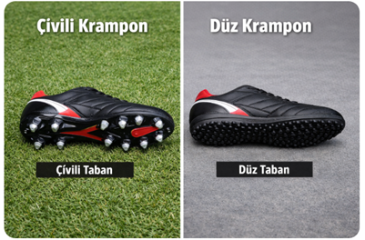 Örneğin, futbol veya trekking ayakkabılarının tabanı çivi, krampon veya derin dişler (lug) içeriyorsa ya da bu unsurların takılmasına uygun tasarlanmışsa,